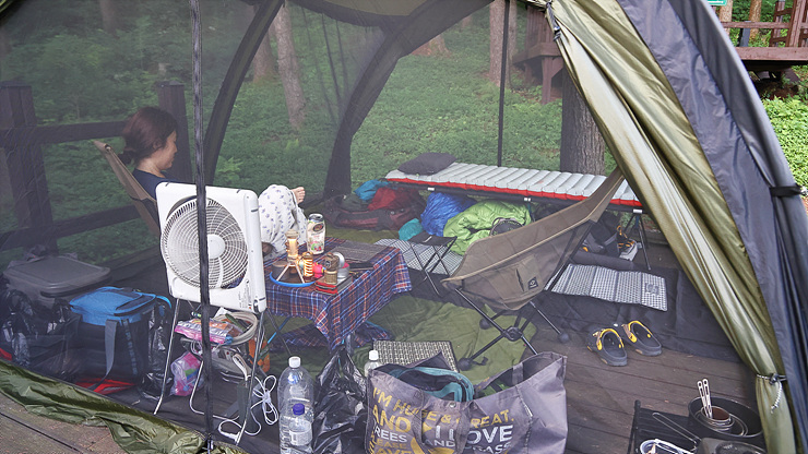 텐트 안과 밖에서 뒹굴뒹굴하면서