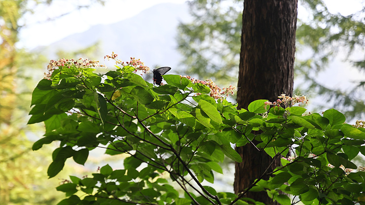 제비나비가 끝물인 누리장나무 꽃 주변을 부산스럽게 맴도는 중에