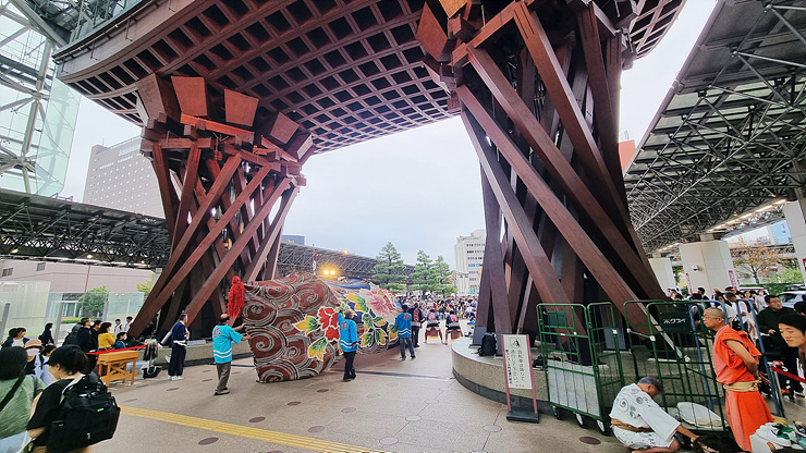 역앞에 있는 가나자와 상징물 ,츠즈미몬,