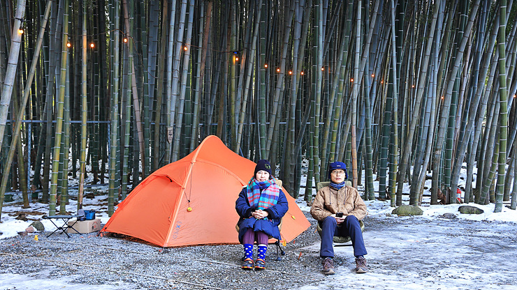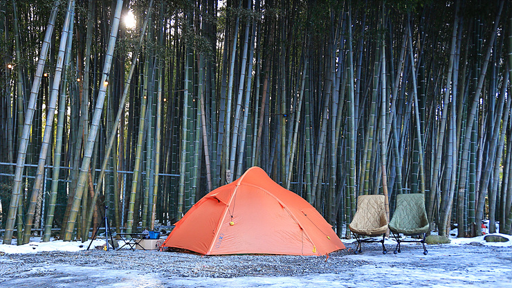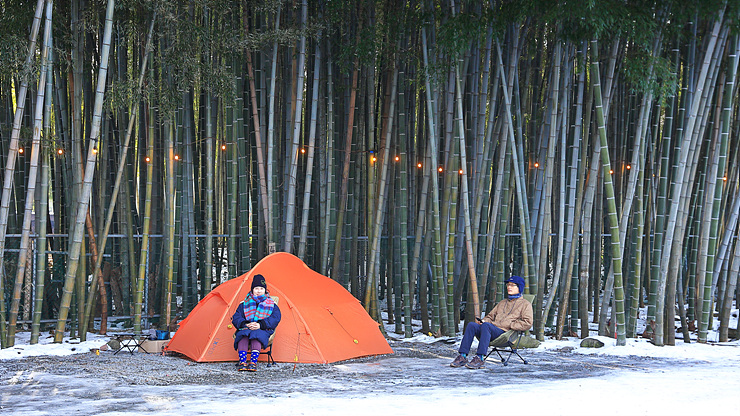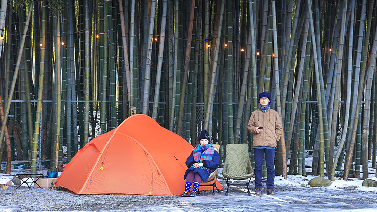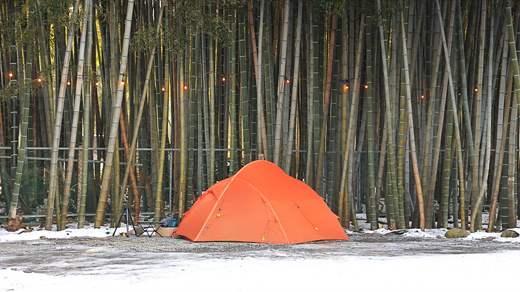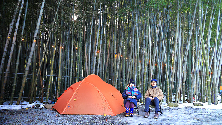 대숲을 배경으로 캠핑을 할 수 있는 사이트가 있는데