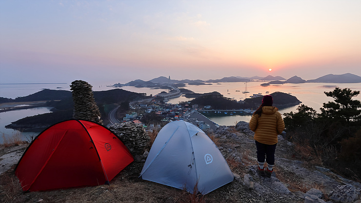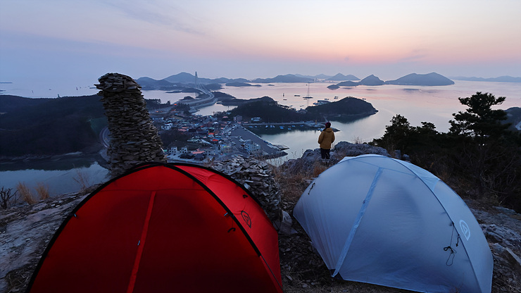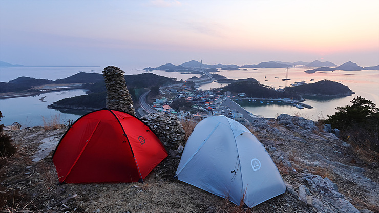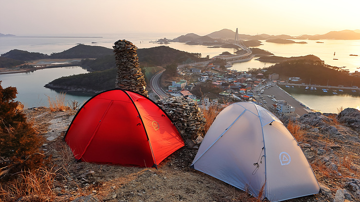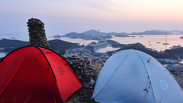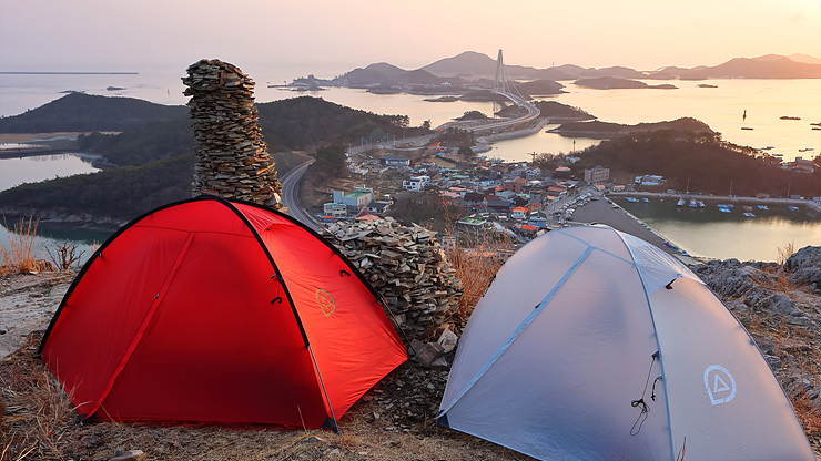 텐트 2동을 설치한다