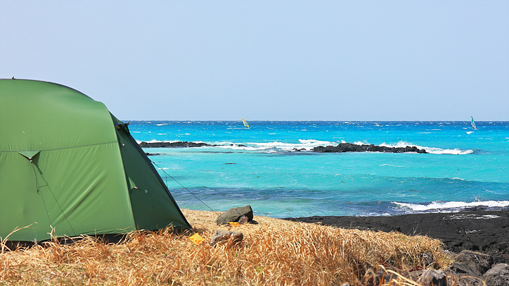 텐트 밖에 테이블과 의자를 펼쳐놓고