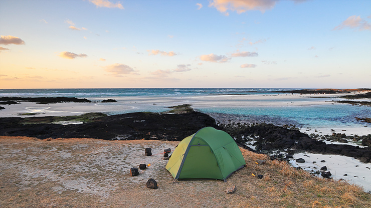 텐트 주변을 서성이며 노을 맞을 준비^^