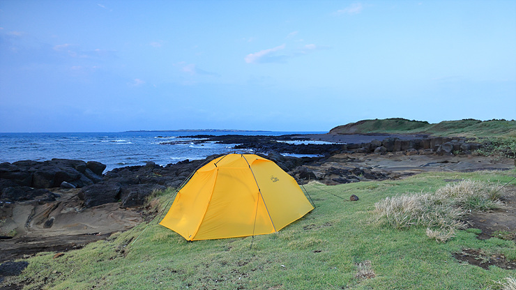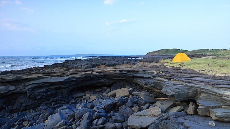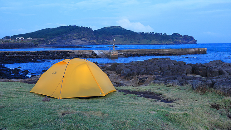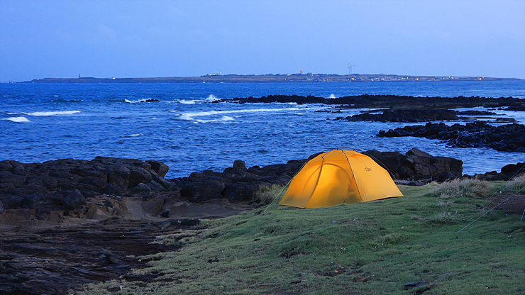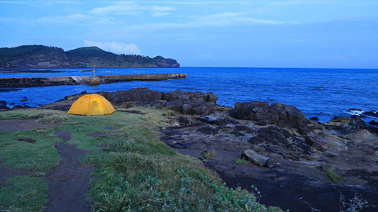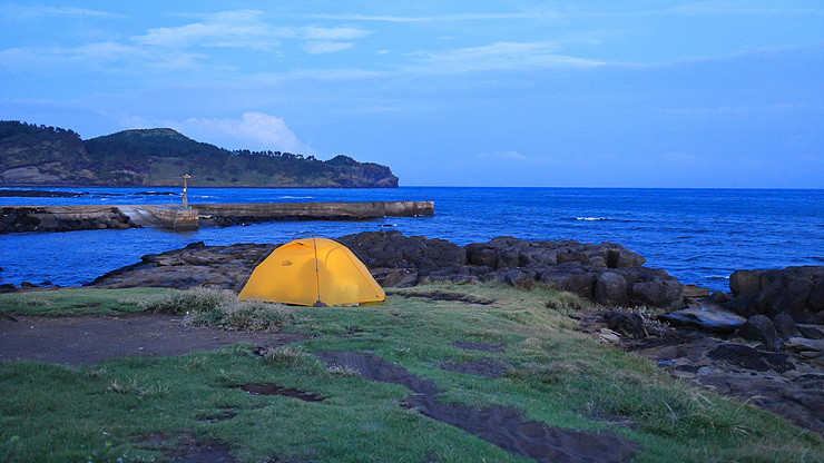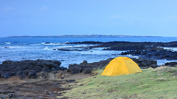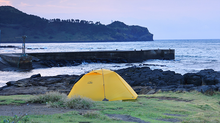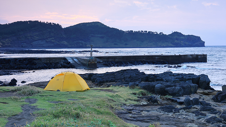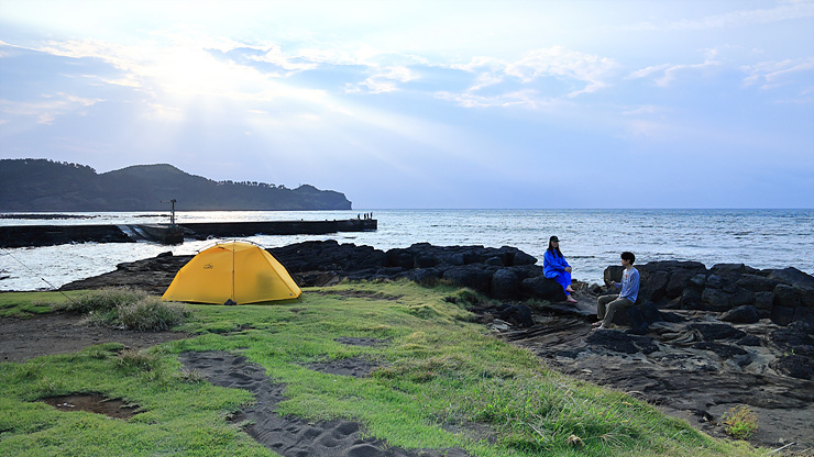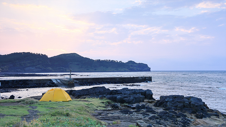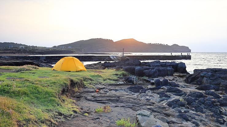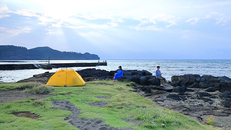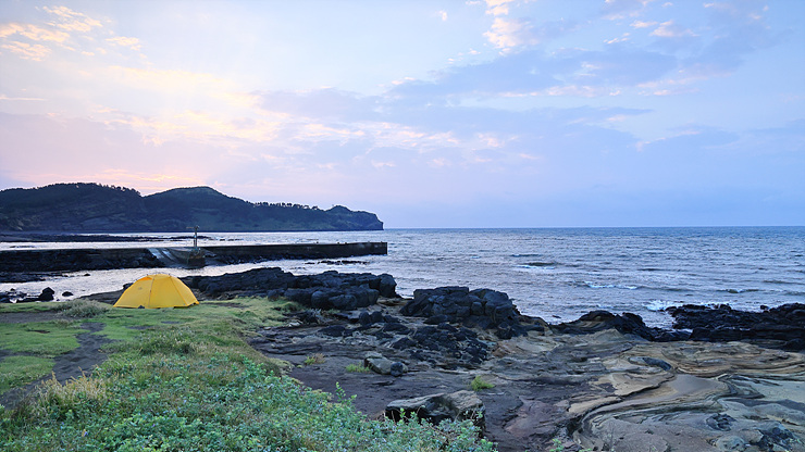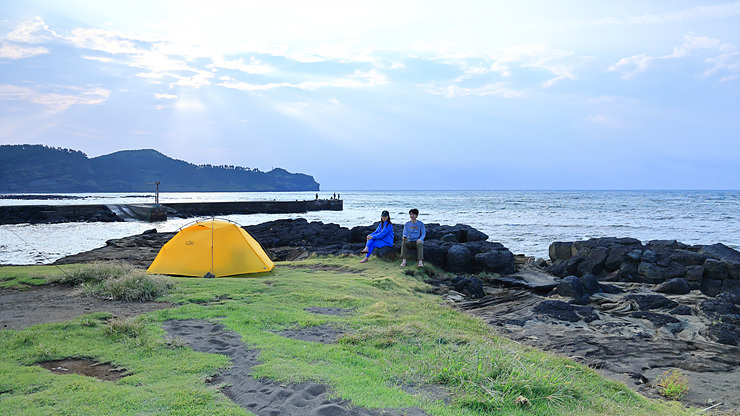 알뜨르 비행장 인근 해변가에 자리를 잡는다...