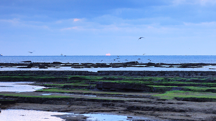 많은 갯바위와 그 위에 덮여있는 이끼의 조화가