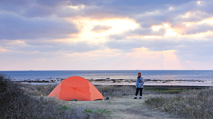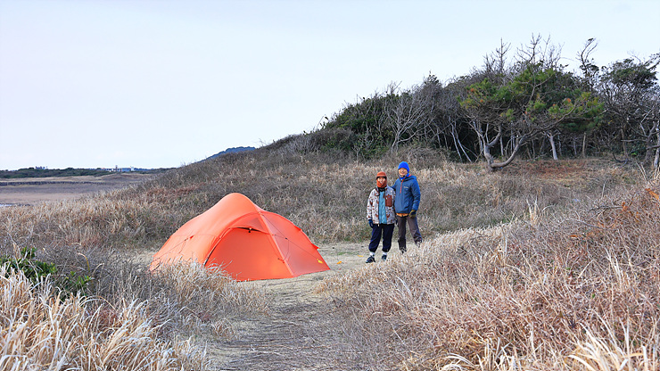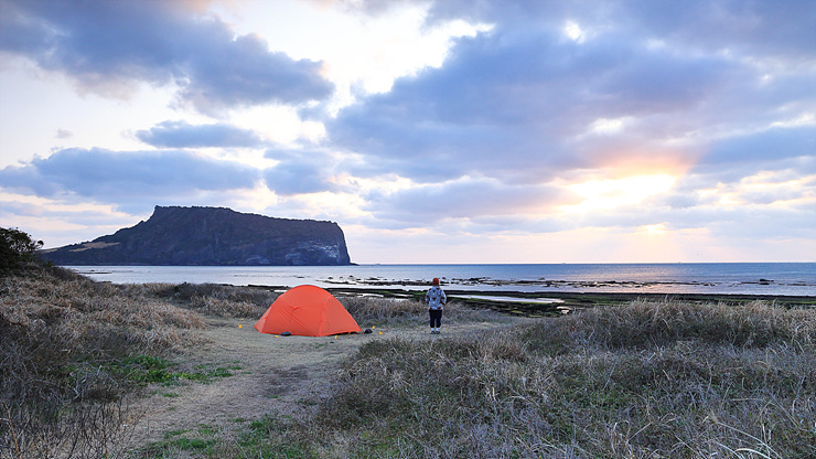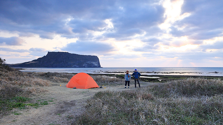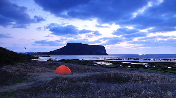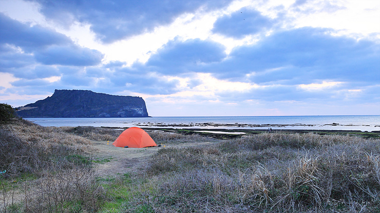 광치기해변 어느 모퉁이에 잠자리 마련~