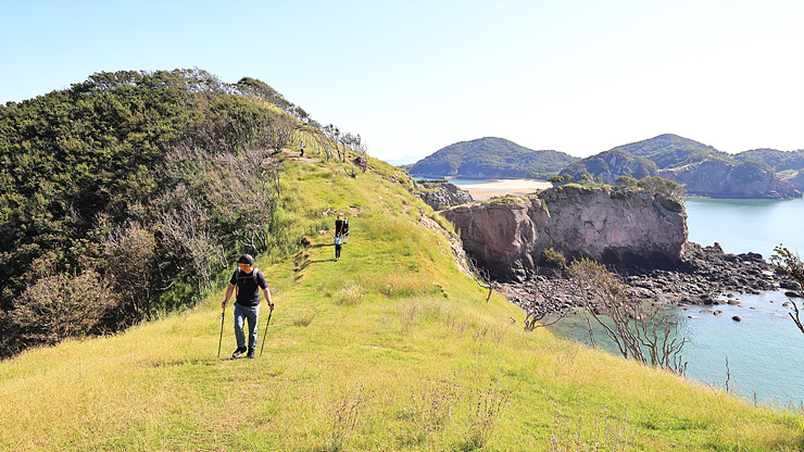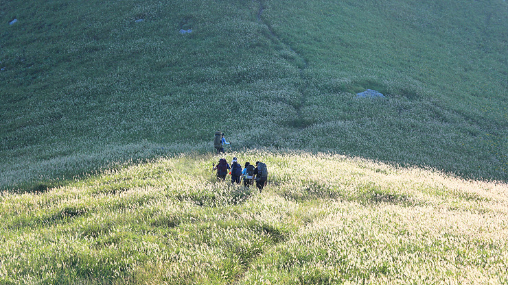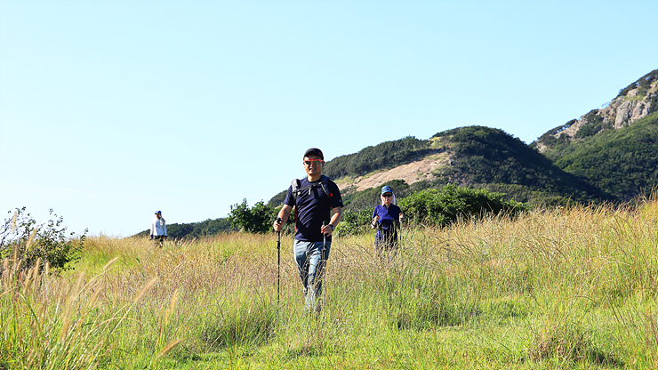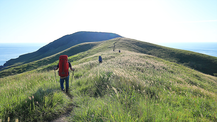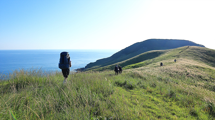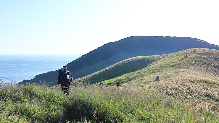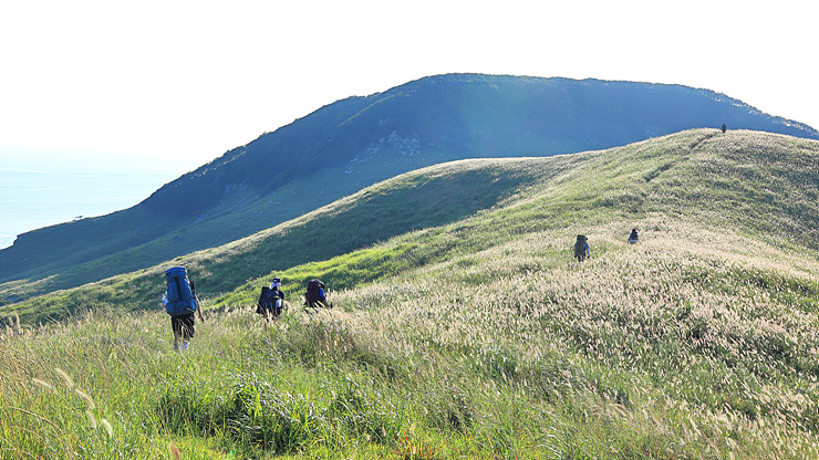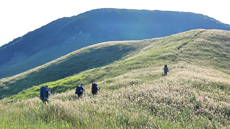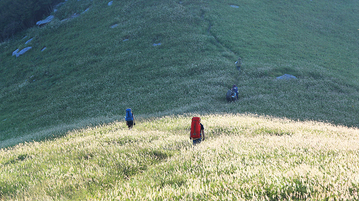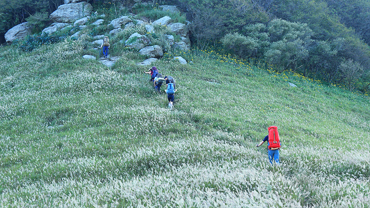 좋은 풍광속의 초지 능선길을 걷게된다~