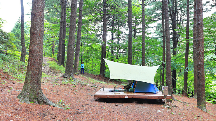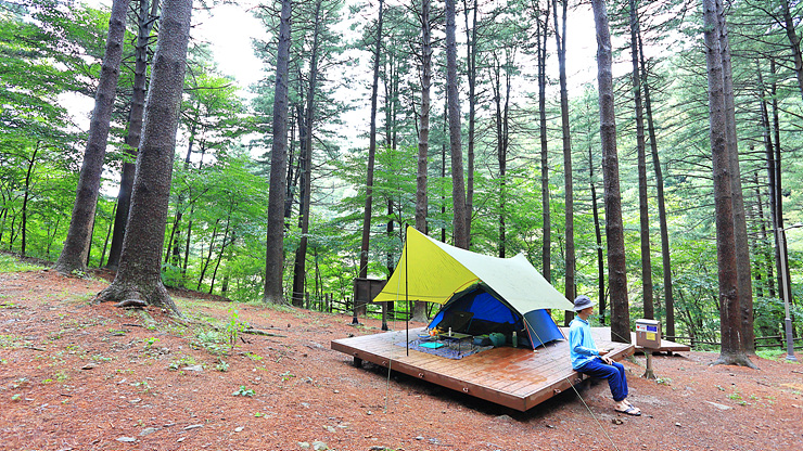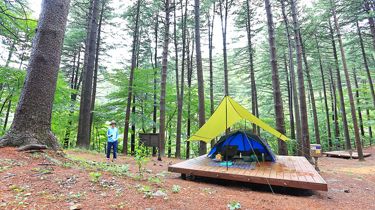 덕유산자연휴양림 야영장 101 데크를 이용하여