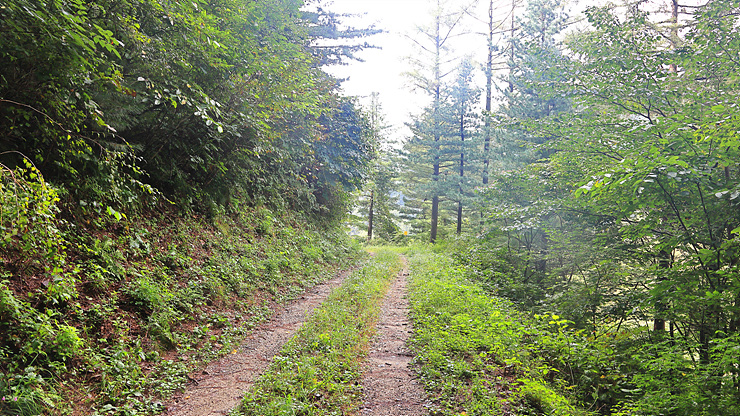 가문비나무숲과 연결된 산책길을 진행하려다가
