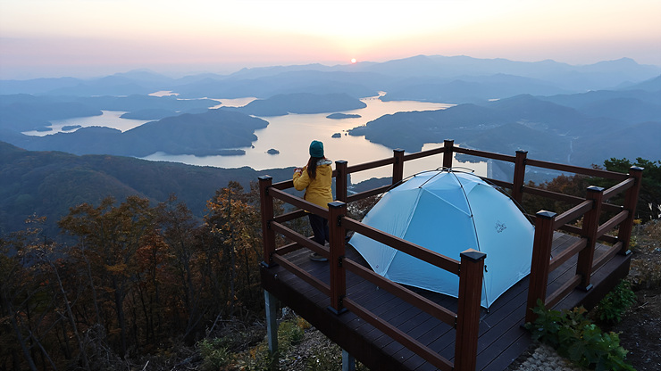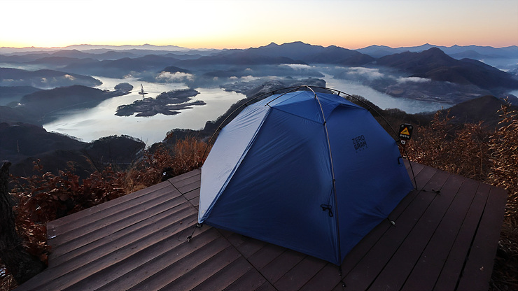 2025.12.5-6(금,토) 아내와 함께하는옥정호 뷰 포인트,임실,완주 오봉산 용운리 입구에 주차를 하고급한 오르막을 진행한다 홀로 조금은 힘든 산행을 하면 30여분이 소요되는짧지만 굵은 산행길. 아내와 함께 진행하니두 배 이상의 시간이 소요된다 이곳을 목적지로 출발하는 경우항상 걱정?되는 것이 한 가지 있는데,그것은정상 데크에 선점자가 있을까하는 근심. 정상 데크가 아니어도텐트를 펼칠만한 곳이 여러곳 있지만 그래도,조망과 편안함을 생각하면정상데크가 최고이다 다행스럽게정상에는 누구의 방문도 없다.. 해가 서쪽으로 없어지기전데크에 텐트를 설치 저녁노을을 감상한다 대기는 상당히 선명하게 유지되고 있고기온도 온화한 편..